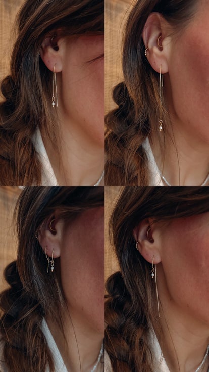 - Trek alleen het staafje door je oor voor een klassieke, lange look.
